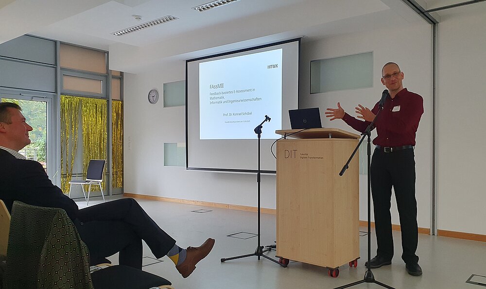 Seit August 2021 gibt es FAssMII - Feedback basiertes E-Assessment in Mathematik, Ingenieurwissenschaften & Informatik - ein von der Stiftung Innovation in der Hochschullehre in der Förderlinie Hochschullehre durch Digitalisierung stärken gefördertes Lehr-Lern-Projekt. Es sind die Fakultäten Bauwesen, Digitale Transformation & Ingenieurwissenschaften sowie des Mathematisch-Naturwissenschaftliche Zentrum der HTWK Leipzig am Projekt beteiligt.