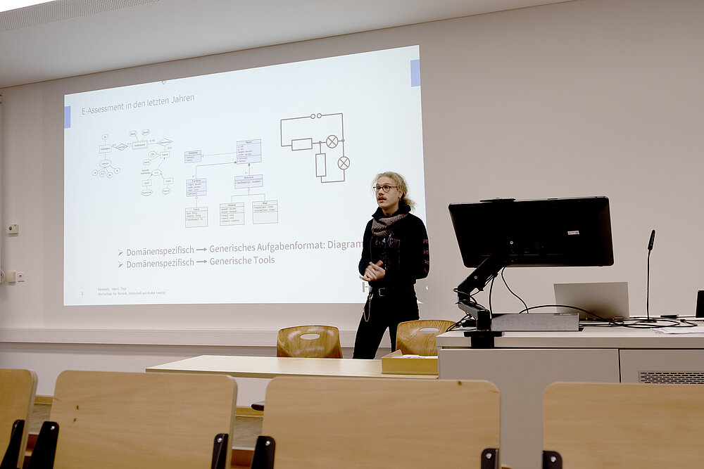 Zur Eröffnung präsentierte sich das Forschungsprojekt FAssMII (www.fassmii.de), das u.a. an der FDIT angesiedelt ist und Feedback-Basiertes E-Assessment in Mathematik, Informatik und Ingenieurwissenschaft in den Mittelpunkt stellt. Paul Brassel und Dr. Erik Morawetz – wissenschaftliche Mitarbeiter im Projekt – gaben Einblicke in ihre Arbeit und berichteten über erste Ergebnisse ihrer Forschungsprojekte.