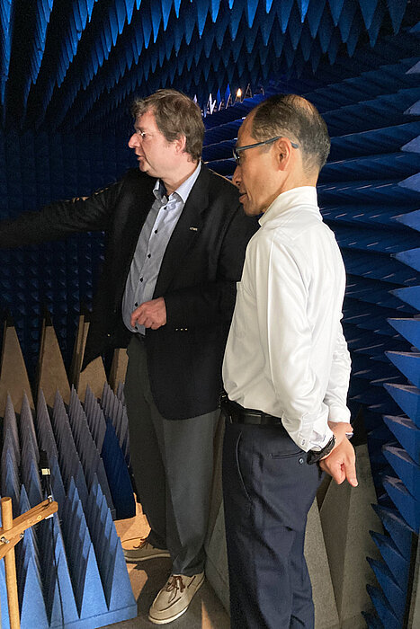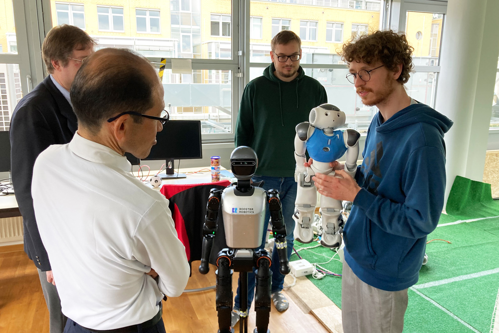 Other members from HTWK Leipzig also took part in the programme of the visit: Prof. Dr.-Ing. Michael Einhaus, Dean of Studies for the Master's program in Information and Communication Technology at the Faculty of Digital Transformation, and Silke Mühl representing the International Office. During a short tour through the Faculty's laboratories, Mr. Nakada received a good insight into various areas of activity and research, e.g. the laboratory for electromagnetic compatibility, the basic laboratory for electrical engineering and the research field of the HTWK Robots Team. Both sides look forward to further developing the young cooperation and await further research projects and academic exchange formats in the future.