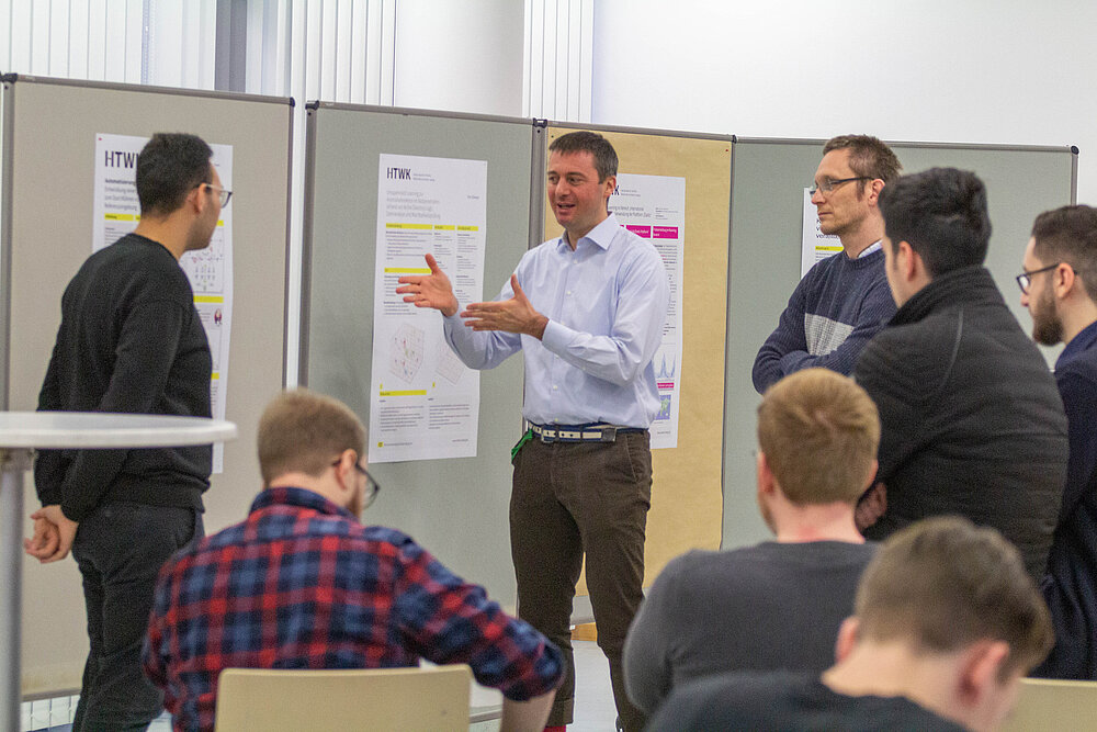 Genau diese Werte wissenschaftlichen Arbeitens stehen im Zentrum der jährlich veranstalteten Tage der Wissenschaft an der Fakultät Digitale Transformation (F DIT). Eingebettet in ein Rahmenprogramm der Fakultät mit wissenschaftlichem Impulsvortrag und der Vorstellung der fakultätseigenen Forschungsprojekte stellten Anfang des Jahres ca. 50 Bachelorstudierende der Studiengänge Informations- und Kommunikationstechnik und Telekommunikationsinformatik am 10. und 11.01.2023 ihre erarbeiteten Praxisprojekte im Rahmen einer Posterpräsentation vor Ort vor.